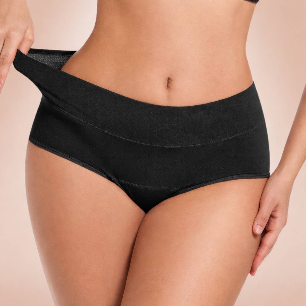 Aquí está La Maz Souplesse con corte de cintura alta. Se adapta a las caderas para una silueta estilizada y una sujeción óptima. Estas braguitas menstruales, con un diseño funcional, cómodo y depurado, han sido pensadas para ofrecer una comodidad óptima